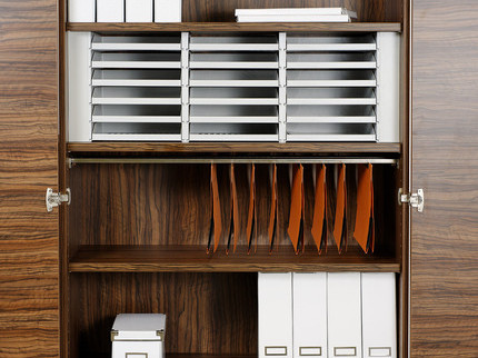 Je nach Platzbedarf und Raumsituation, in verschiedenen Ordnerhöhen kombinierbar und in zahlreichen Ausstattungsvarianten erhältlich, bietet das Schranksystem endless intelligente und bedarfsgerechte Lösungen für jeden Arbeitsbereich. So gibt es Schiebe-, Schwebe- oder Flügeltüren, Hängeregistraturen oder Schubladen und offene oder verdeckte Regale für maximale Gestaltungsfreiheit in punkto Funktionalität. Diverse Sockel- und Griffvarianten, sowie unterschiedliche Dekore und Farben, runden das Angebot ab und sorgen für das Maximum an Ästhetik.