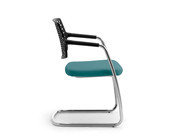 Eine durchgehende Schale aus Stahl vereinigt Fußgestell und Armlehnen in einer einzigen Linie. Mit der Rückenlehne in vier wählbaren Farben und einer individuellen Stoffauswahl für den Sitz passt sich IOTA perfekt in jedes Ambiente und überzeugt dabei durch einen hohen Sitzkomfort.