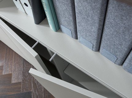 Die Arbeitswelten werden wohnlicher. Das Büro wird zum Lebensraum. Wohlfühlen, Kommunikation, klare Linien und Formen bilden die Konstanten im Arbeitsalltag und sind gleichzeitig die Basis für das Programm clear. Ob als push to open oder mit Griffleiste – clear ist die Reduzierung auf das Wesentliche.