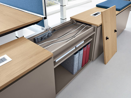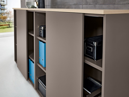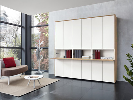 Die Arbeitswelten werden wohnlicher. Das Büro wird zum Lebensraum. Wohlfühlen, Kommunikation, klare Linien und Formen bilden die Konstanten im Arbeitsalltag und sind gleichzeitig die Basis für das Programm clear. Ob als push to open oder mit Griffleiste – clear ist die Reduzierung auf das Wesentliche.