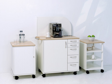 Kombinierbar ist die mobile Kaffeebar mit einem Stauraumwagen, der ausreichend Unterbringungsmöglichkeiten für Geschirr und Gläser bietet. Der Servierwagen ist mit seinen 3 Ablageflächen ein idealer  und praktischer Begleiter. Die mobile Kaffeebar gestaltet die Kaffeepausen während einer Konferenz oder Besprechung zur leichten, flexiblen und unkomplizierten Gelegenheit.