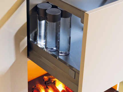Der Elektrokamin besticht durch die perfekte Illusion einer natürlichen Flamme. Der Wasserdampf-Effekt lässt Qualm assoziieren und sorgt dabei gleichzeitig als Luftbefeuchter für ein verbessertes Raumklima. Die Seitenteile können als Stauraum genutzt werden. Eine große Schublade bietet sich für ein kleines Catering-Angebot an.