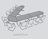 Für Konferenzen mit multimedialer Begleitung ist der Trapeztisch z.B. ideal. Die Tischplattenform ist darauf ausgerichtet, dass jeder Teilnehmer einen guten Blick auf die mediale Darstellung erlangt.