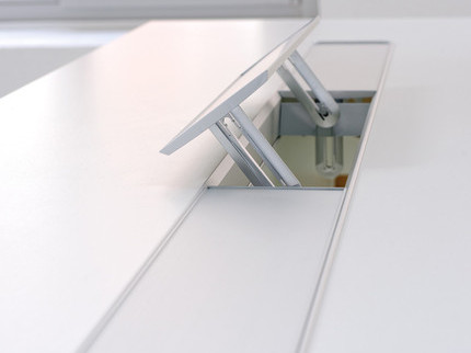 Bridge und Medienwand ist die Verbindung zwischen Büromöbel und Bildschirm. Effizienter Informationsfluss sorgt für mehr Komfort, Konzentration und Produktivität. Das moderne Design macht die Bridge zum absoluten Eyecatcher in einer Empfangshalle oder Besprechungsraum.